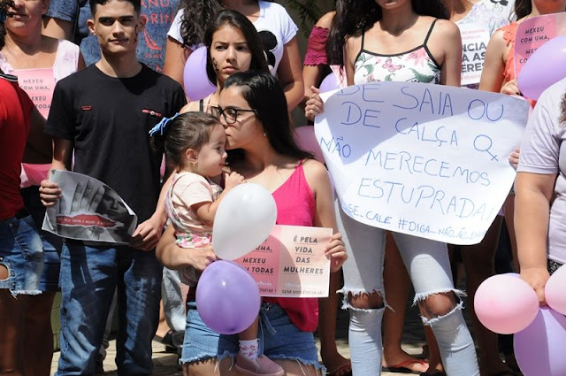 dezenas de pessoas que realizaram um ato contra o estupro. A