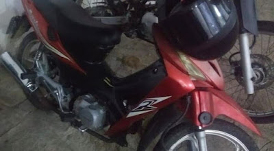 jovens em uma motocicleta, modelo cinquentinha, furtando o aparelho