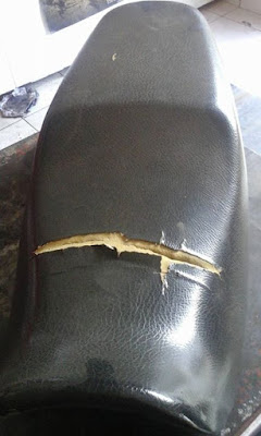 as discussões, teria pego uma faca e rasgado o banco da motocicleta do