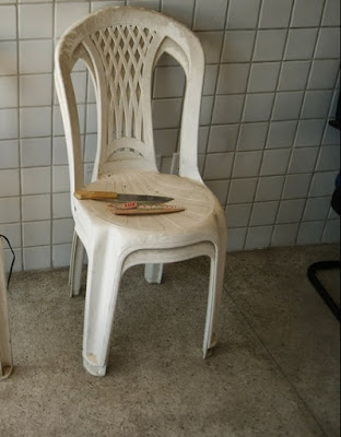 pegou uma faca, tipo peixeira, e partiu pra cima da vitima ameaçando-o