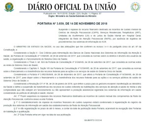 Oficial a Portaria 3.659, que suspende o repasse do recurso financeiro