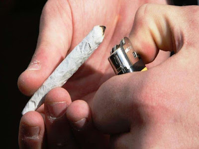 sua calça um cigarro de maconha.
