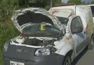 traseiro da ambulância estourou, fazendo com que o condutor perdesse o