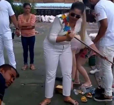 gravada varrendo o chão depois da realização de seu show na virada do