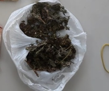 interior do carro uma sacola com aproximadamente 30g de maconha pronta