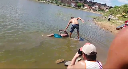 corpo, então populares entraram na água e retiraram o corpo que foi levado