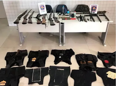 Junto com o bando, policiais militares apreenderam armas, munições e veículos adulterados.