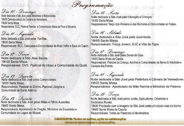 fé, rezando a devoção, aprendendo as virtudes desse Santo e