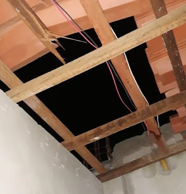 relatou que ao adentrar em sua residência percebeu partes do telhado