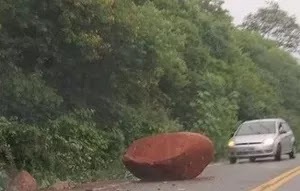 pedras e de terra na estrada que percorre a serra. Na manhã deste domingo (24), os