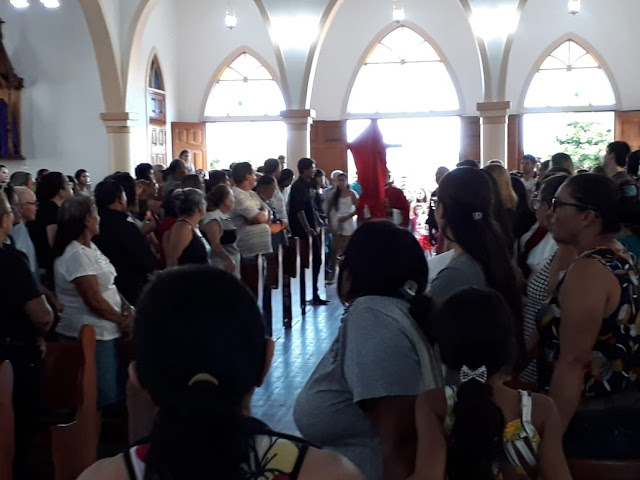 A tarde da Sexta-Santa, que os antigos chamavam de “Sexta-feira Maior” em Santa Terezinha foi marcada pela espiritualidade e celebrada a Paixão e Morte de Jesus Cristo na Igreja Matriz. O silêncio interior, aliado ao jejum e à abstinência a carne, também a oração, marcaram esse dia na Terrinha Santa que viveu o momento em clima de luto e do