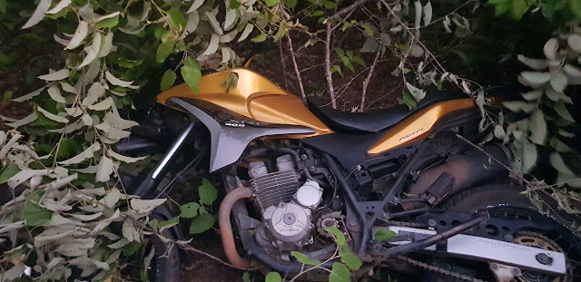 Uma das motos utilizadas no delito foi encontrada no matagal.