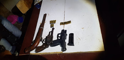 apreendidas três armas de fogo que tinham sido usadas no crime”,