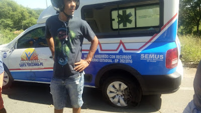 Uma ambulância da secretaria de saúde de Santa Terezinha foi atingida por uma motocicleta na manhã de hoje (6) próximo a Afogados da Ingazeira. O veículo estava fazendo deslocamento para o Hospital Regional para buscar um paciente que estava de alta quando foi atingido por um motociclista, que sofreu uma pancada na cabeça e foi socorrido pelo Corpo de Bombeiros.