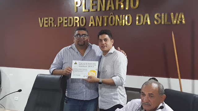 Na sessão ordinária do Legislativo Terezinhense na última quarta-feira (15) em Santa Terezinha, cada vereador recebeu cinco certificados que garantem 50% de desconto no valor da mensalidade para aqueles interessados em cursar universidade pela Faculdade Vale do Pajeú