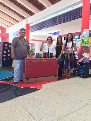 uma TV de 49 polegadas entregue pelo prefeito Vaninho de Danda, que vem sistematicamente melhorando os ambientes escolares do município, revitalizando as escolas, oferecendo condições dignas de ensino/aprendizagem para professores e alunos.
