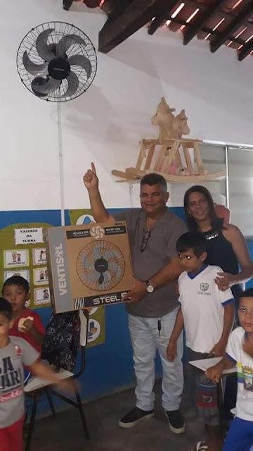 As salas das Escolas João Lopes da Silva no Sítio Macacos e Tobias Nunes de Lira na Vila do Tigre receberão os ventiladores. A Creche Maria Helena Soares de Moura recebeu