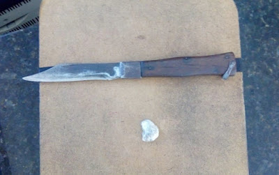 conhecida por maconha, pesando aproximadamente 0,05g e 01 canivete na