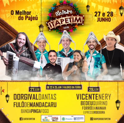 dia 23 haverá o Itarrasta, Bodegas do Forró, apresentações da Educação, Pedro do Brega, Netinho do Forró e Alex do Acordeon.