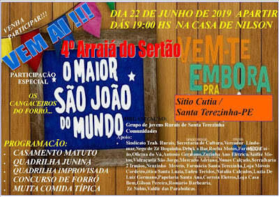 Para balançar a cintura e arrastar os pés os Cangaceiros do Forró trazem a mistura de ritmos nordestino, com o forró, xaxado, baião e muito xote. A organização do evento é do Grupo de Jovens Rurais de Santa Terezinha e comunidades.