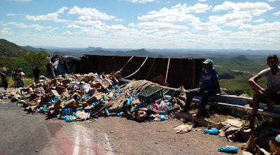 Faltou Freios – Caminhão carregado de água sanitária tomba na Serra de Teixeira .