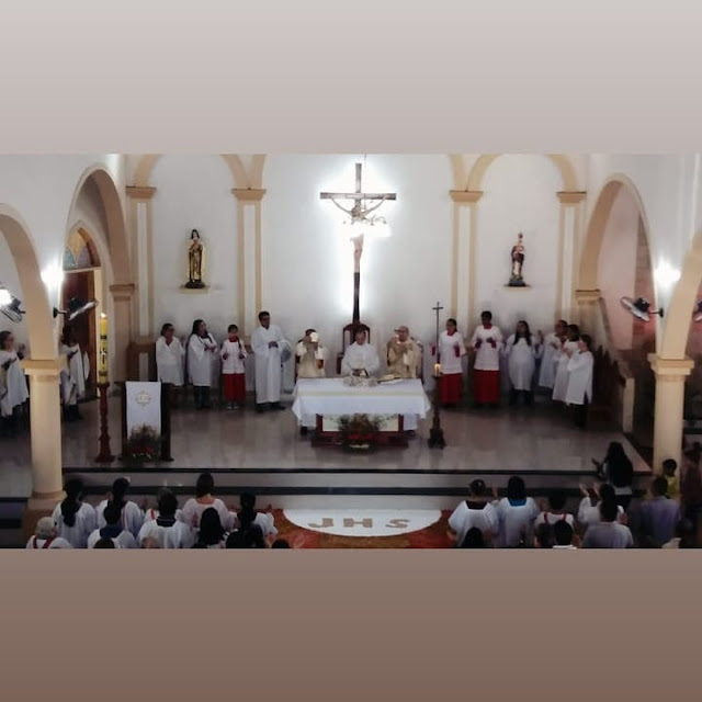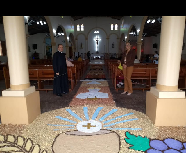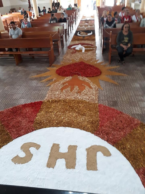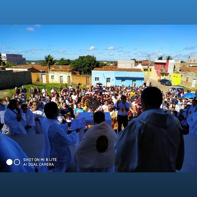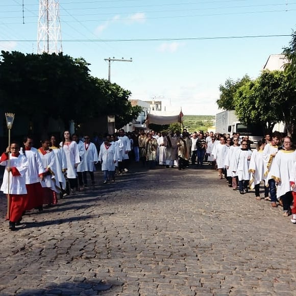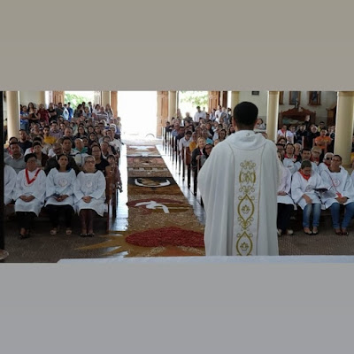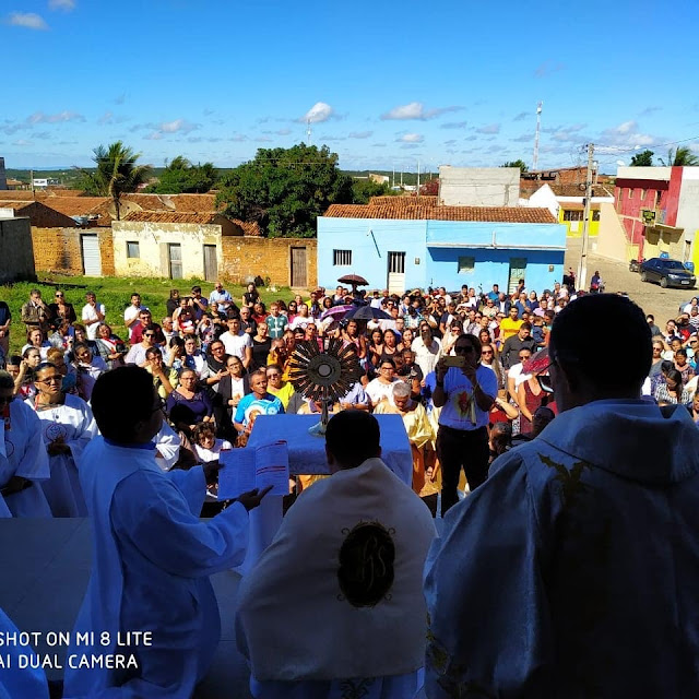 A paróquia de Santa Terezinha celebrou na manhã de hoje (20) o mistério da eucaristia, o sacramento do corpo e do sangue de Jesus Cristo. A celebração de Corpus Christi foi presidida pelo padre Elton Wilson na matriz, devidamente enfeitada para a passagem do Santíssimo Sacramento, acompanhado de dezenas de fies católicos que também participaram da procissão pelas vias públicas da cidade.