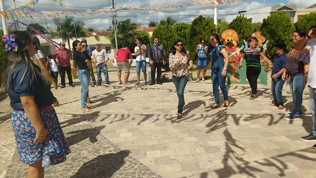 O povo meteu o pé na dança e se divertiu para valer juntamente com Vaninho de Danda, que tocou triângulo e animou os funcionários municipais, dançando, conversando e se servindo com um ótimo café da manhã com comidas típicas do nosso nordeste e ainda dançaram quadrilha junina.