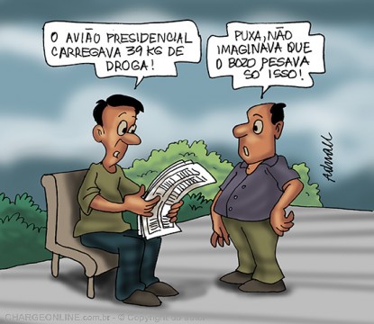 Charges do Dia – Droga no avião presidencial. Notícias Por Blog do Pereira.Net Publicado em 27 de junho de 2019 Ultima atualização 1 de fevereiro de 2022 0 139 Compartilhado ChargeCharge do Dia 0 139 Compartilhado FacebookWhatsAppTelegram
