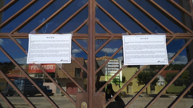 deste ano, a agência dos correios de Teixeira está fechada. Um aviso