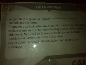 Caixa são São Jose do Egito, Sertânia e Serra Talhada. Além dos