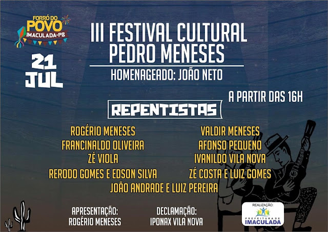 um numero cada vez maior de amantes da poesia e do repente. Desta vez, será montada uma estrutura a parte para melhor acomodar aos presentes.