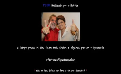 Site do PSDB é hackeado e exibe foto de Dilma e Lula.