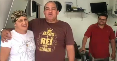 Ronilson a buscou em casa e a levou ao Salão Visual de Evangelista, onde pediu ao profissional que raspasse sua cabeça em homenagem a essa pessoa, encorajada pela cura que virá pela graça divina.