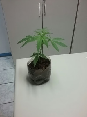 recipiente de plástico contendo 01 (um) pé de maconha.