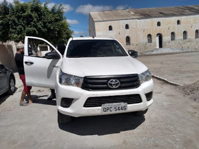 Caminhonete Toyota Hilux, de cor branca e placas QPC 5446, Belo