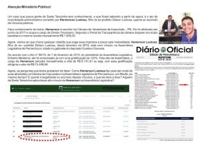 A pergunta feita no panfleto é se Hemerson teria condições de cumprir os dois vínculos na Paraiía e no gabinete do Deputado. “Alguém de Santa Terezinha sabia desses vínculos?” – pergunta o panfleto.