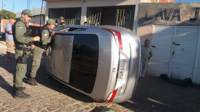 veiculo na hora do capotamento, mas ninguém se feriu.