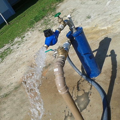 uma retirada de água de um poço artesiano do distrito de Ibitiranga, no