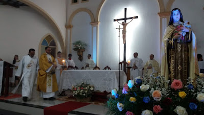 No feriado municipal, os fies católicos mostraram satisfação com o louvor a Santa Teresinha participando do ápice da festa na noite de ontem, relembrando a proposta celada deixada pela santinha das flores.