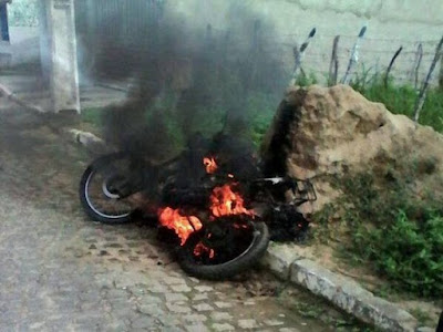 equipe de bombeiros já haviam contido o fogo e a moto encontrava-se