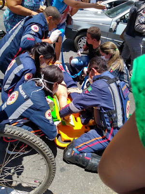 Os feridos receberam atendimento da equipe do SAMU ali mesmo no local.
