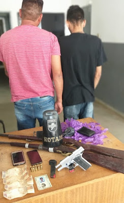 Na ação, os policiais apreenderam com os acusados uma Pistola calibre