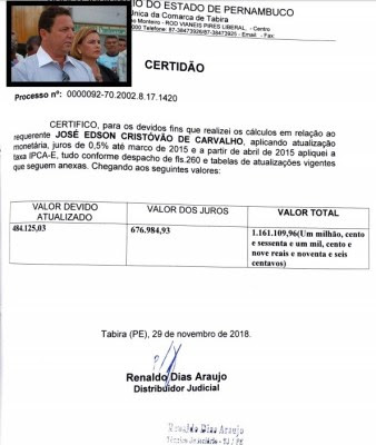 Tabira – Valor que Dinca cobra do município na justiça já passa de R$ 1,2 milhão.