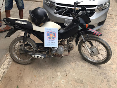 Após análise minuciosa foi constatado que o chassi estava raspado, com apenas os três últimos dígitos visíveis, e o motor pertencia a uma moto Shineray.