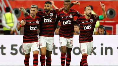 Everton Ribeiro; Arrascaeta, Bruno Henrique e Gabigol. Flamengo e