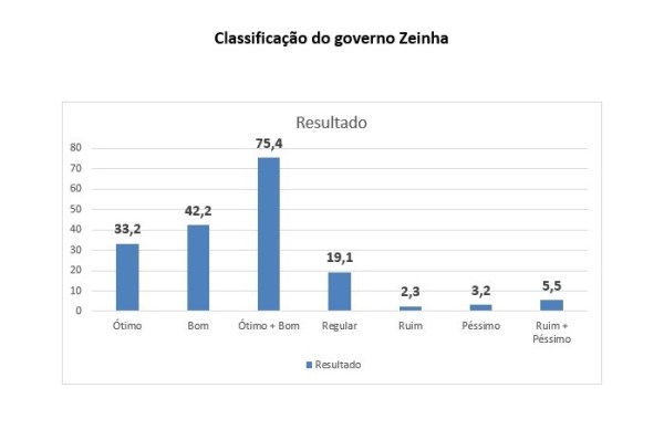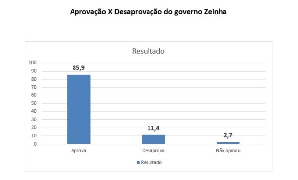 aprova ou desaprova a gestão. Zeinha aparece com 85,9% de aprovação