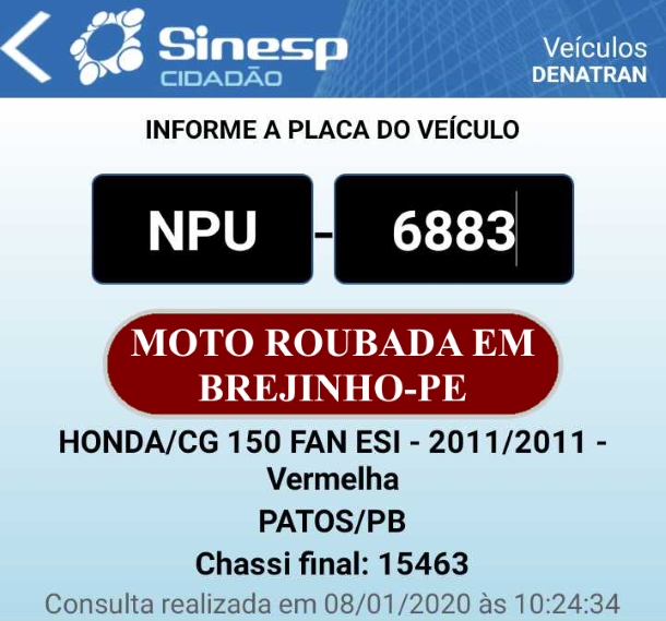Mais uma moto foi tomada de assalto por volta das 6hrs da manhã de hoje (8) em Vila de Fátima, município de Brejinho. Segundo informes ao blog, a moto pertence a senhora
