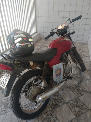 A guarnição policial constatou ainda que a placa da referida motocicleta estava com o lacre violado.