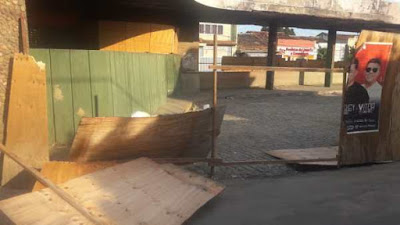 14 de janeiro. Parte dos tapumes o vento levou.