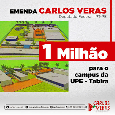 O deputado federal Carlos Veras  do Partido dos Trabalhadores (PT) destinamos 1 milhão de reais numa Emenda Parlamentar para a construção do Campus da UPE na cidade de Tabira. A obra vai beneficiar estudantes, além de catalisar o desenvolvimento para toda região do Pajeú.